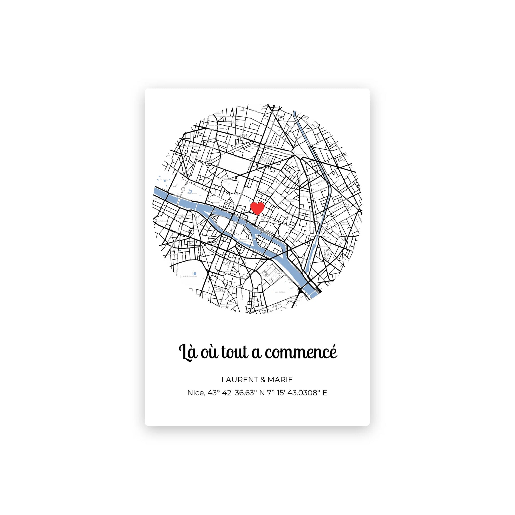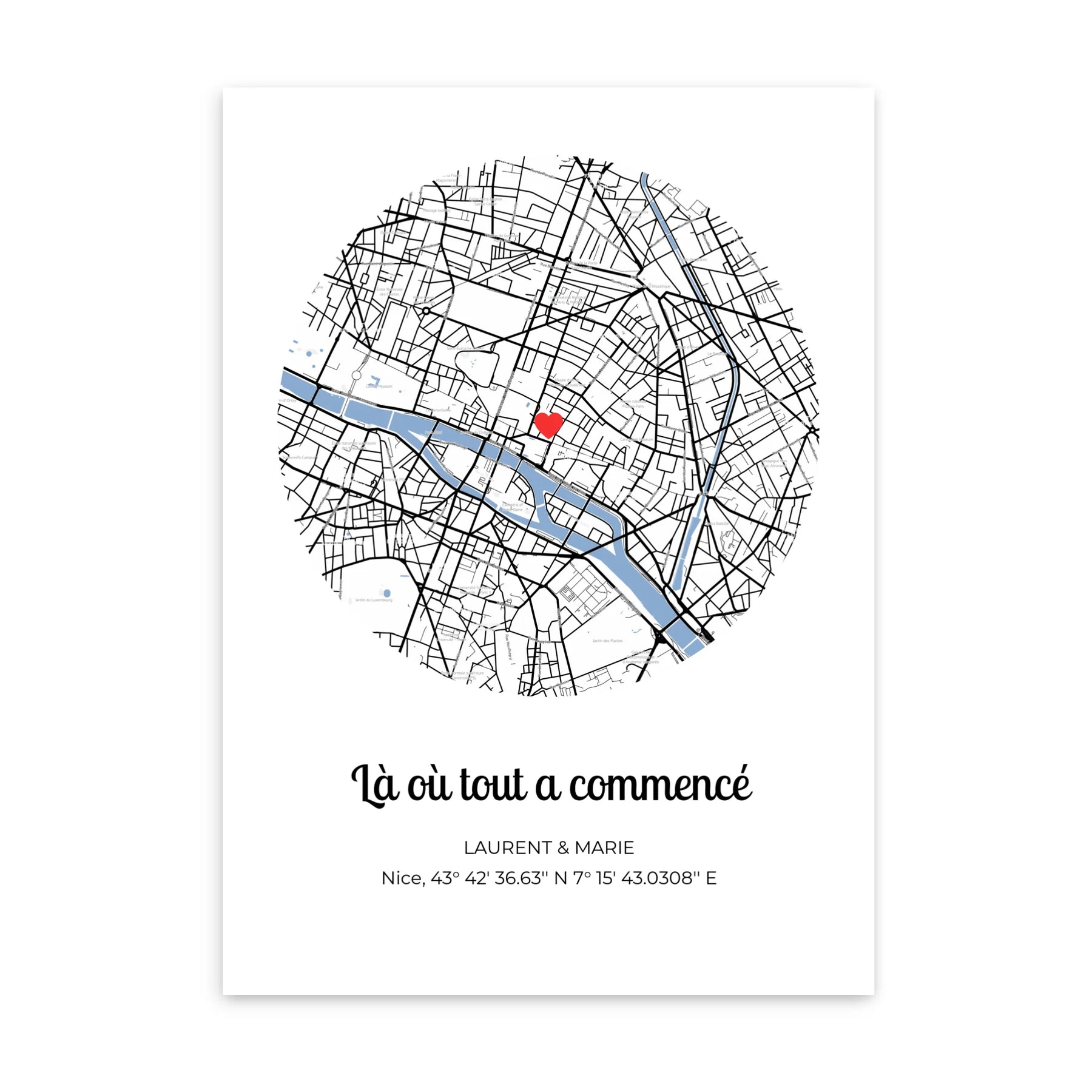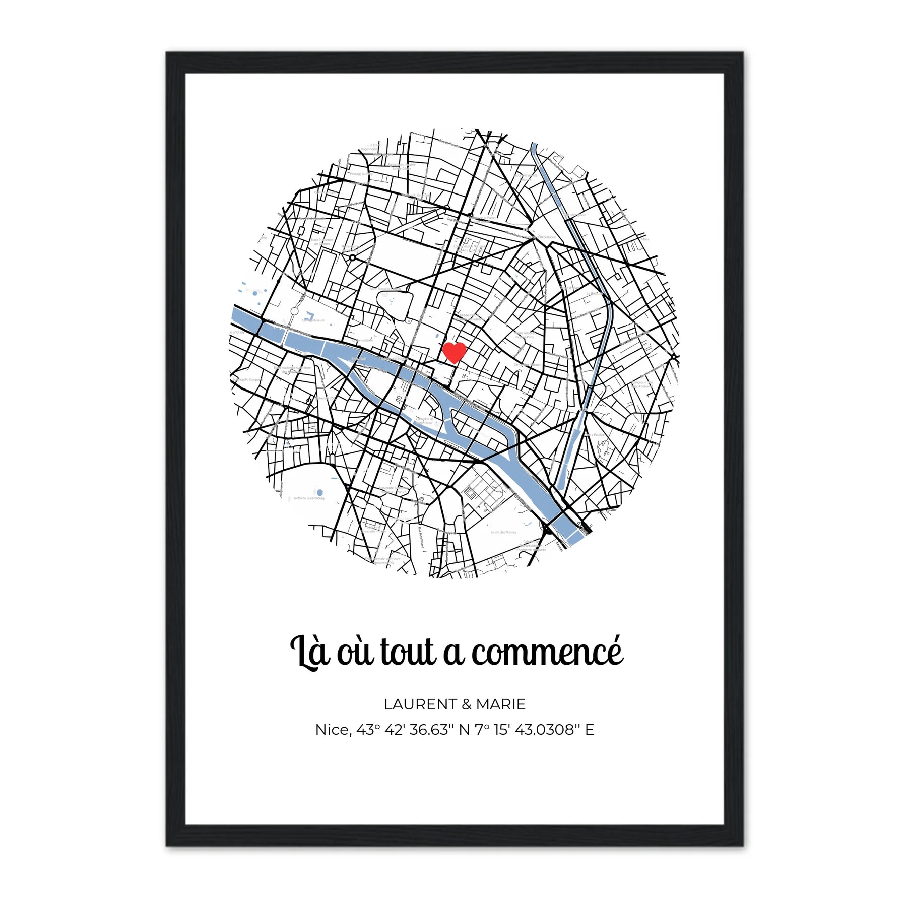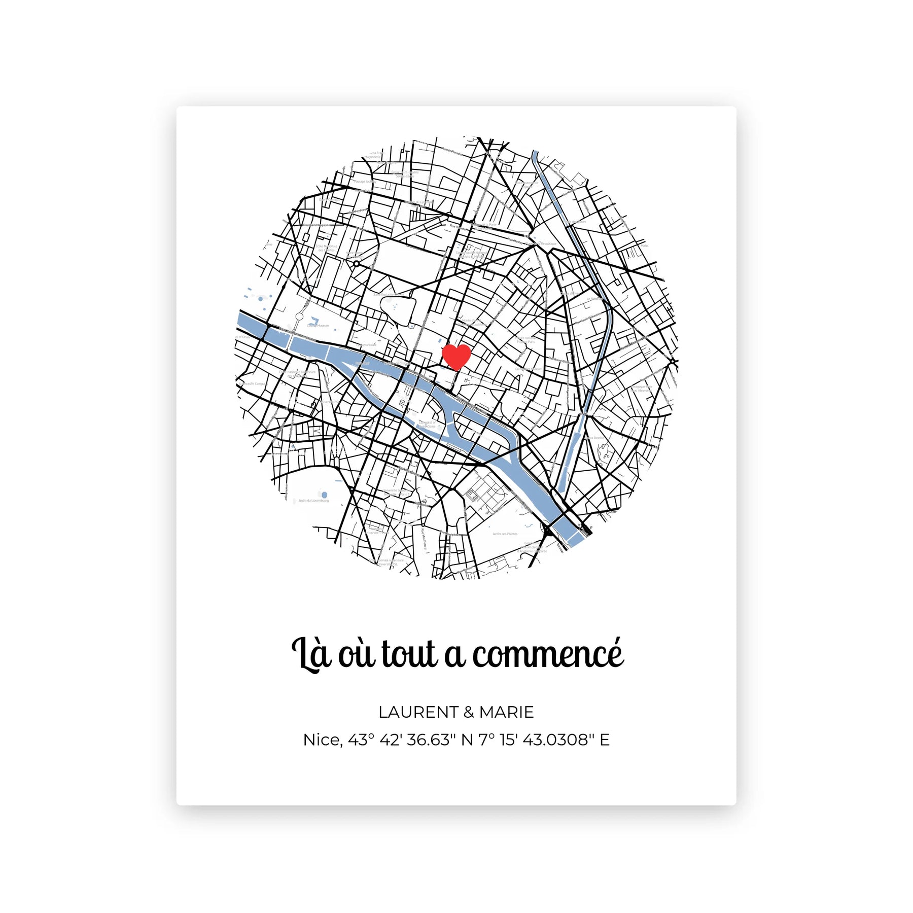 Notre Poster "Là où tout a commencé" est la façon la plus romantique d'immortaliser le début d'une relation. Ce poster cartographique magnifiquement conçu célèbre l'amour sous toutes ses formes et peut être personnalisé avec un lieu, un texte et une forme particulière, ce qui en fait un cadeau inoubliable qui préserve les souvenirs à travers le temps ! Vous souhaitez plutôt dire, "Là où on s'est embrassé pour la première fois" ? Pas de soucis, laissez votre imagination vous guider.