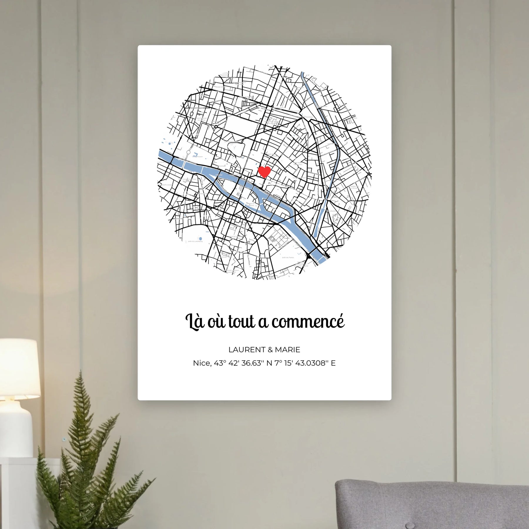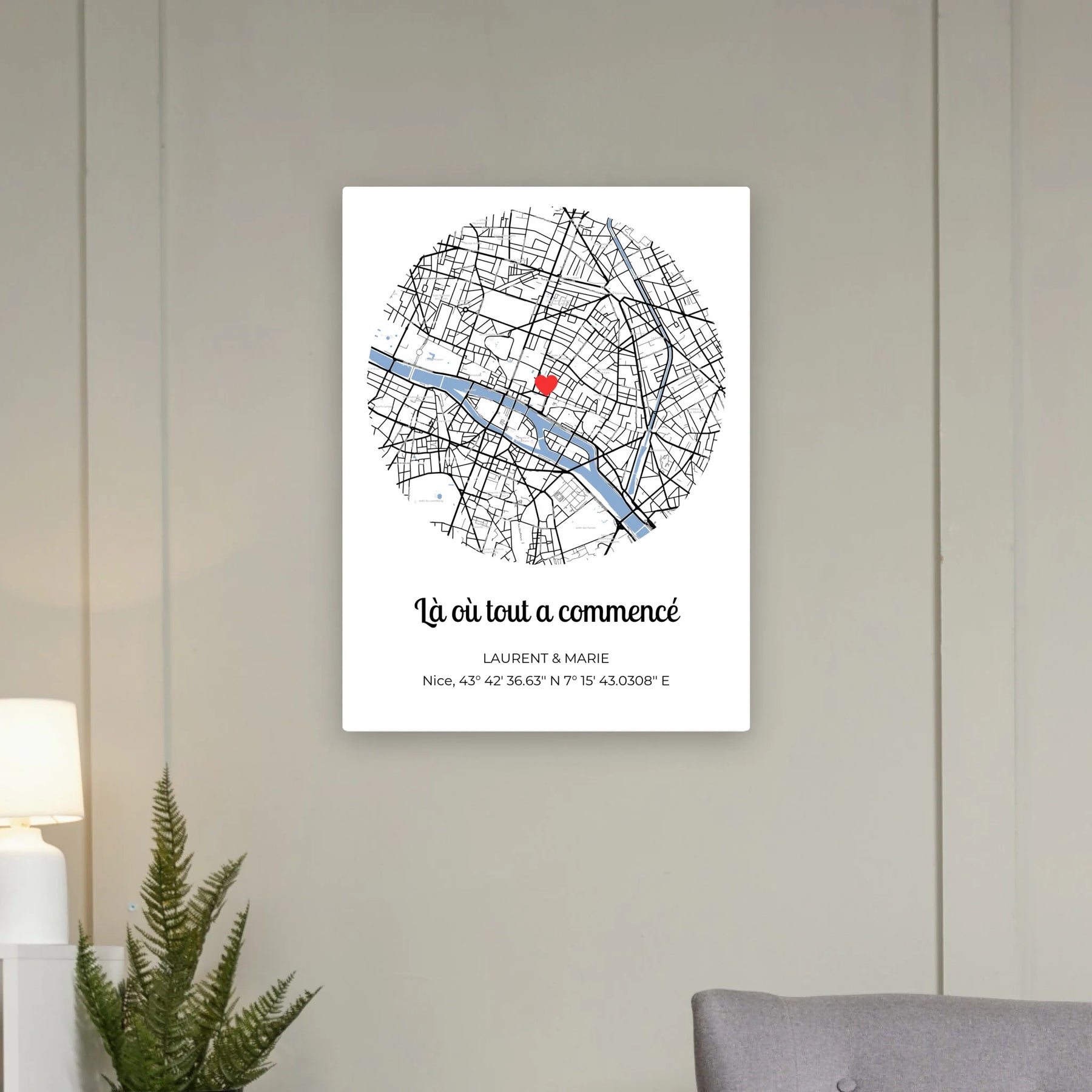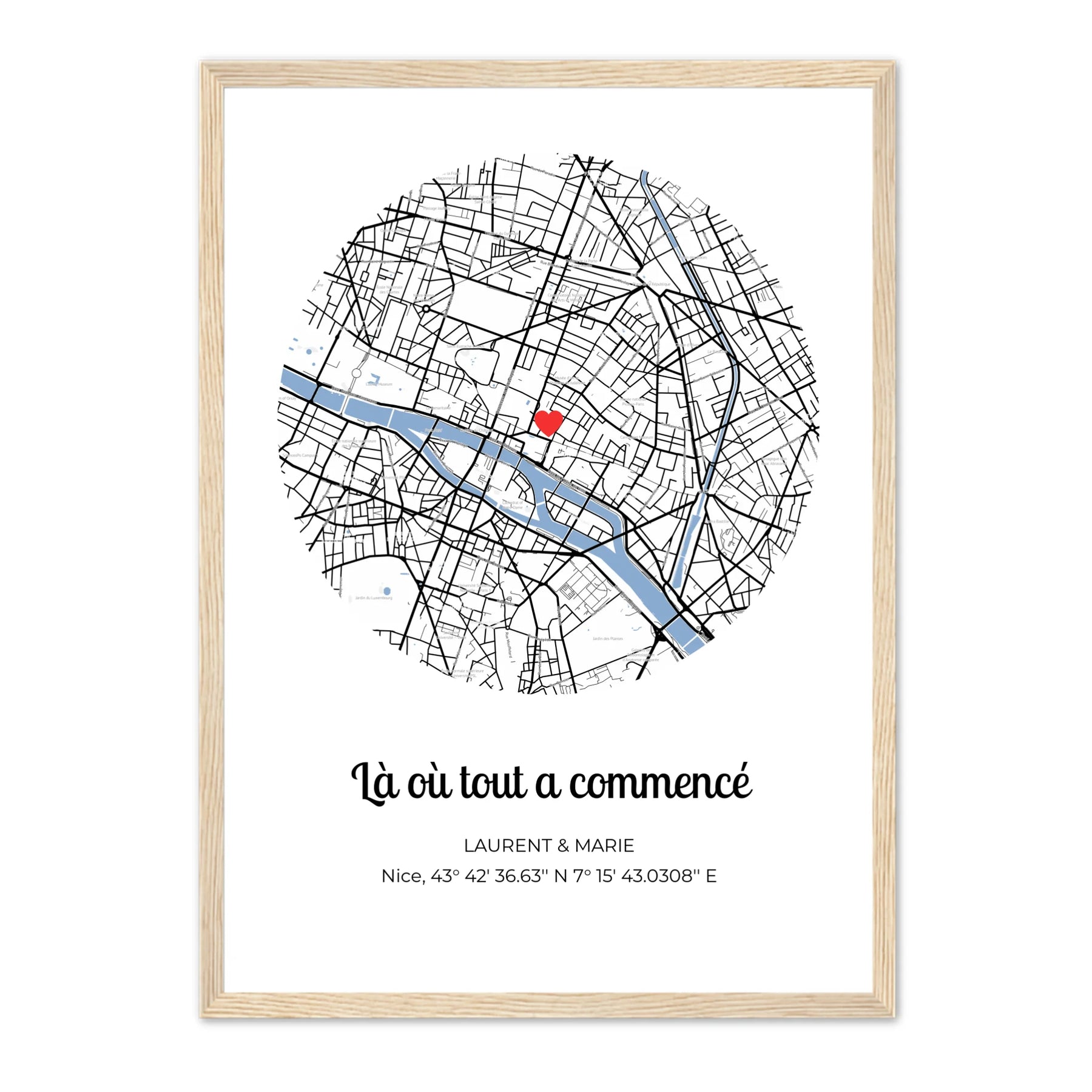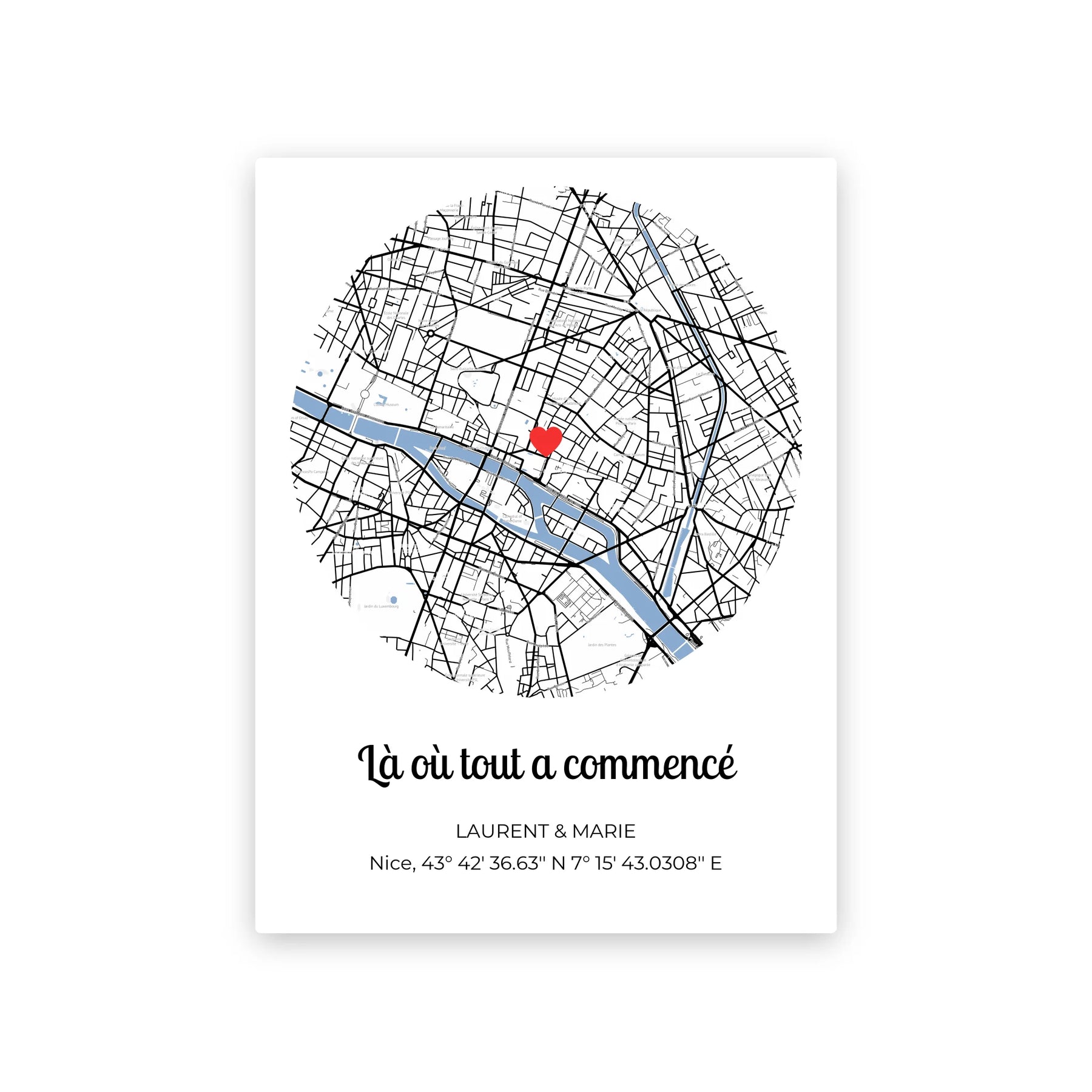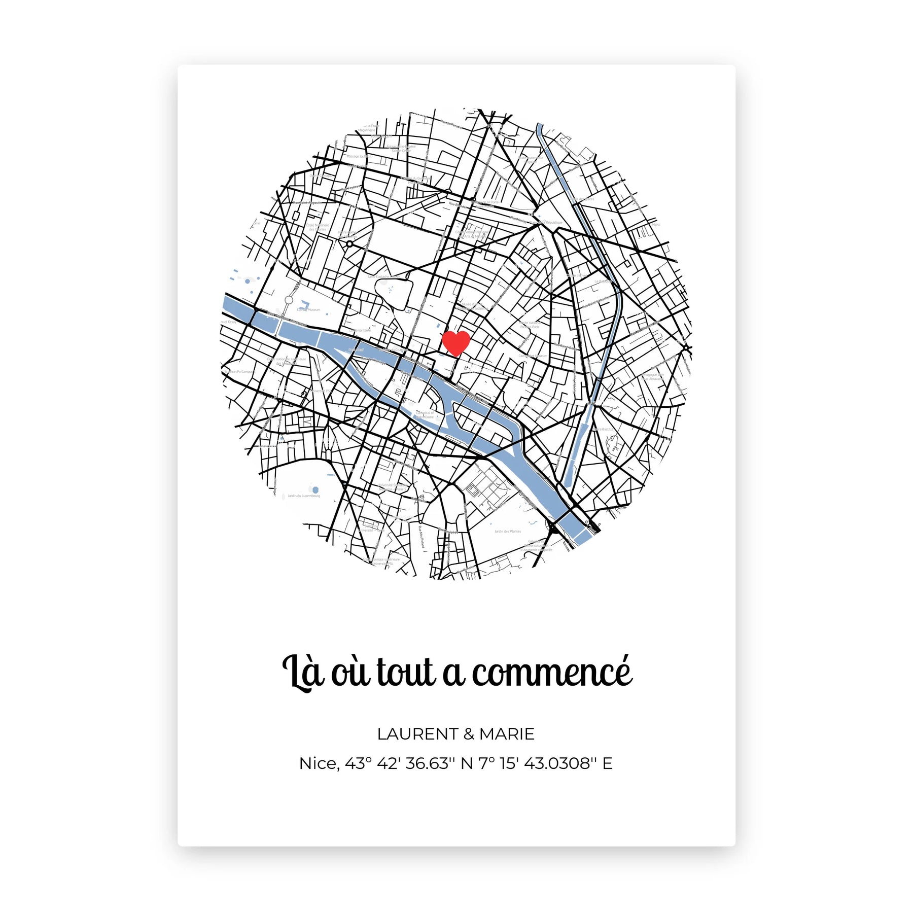 Notre Poster "Là où tout a commencé" est la façon la plus romantique d'immortaliser le début d'une relation. Ce poster cartographique magnifiquement conçu célèbre l'amour sous toutes ses formes et peut être personnalisé avec un lieu, un texte et une forme particulière, ce qui en fait un cadeau inoubliable qui préserve les souvenirs à travers le temps ! Vous souhaitez plutôt dire, "Là où on s'est embrassé pour la première fois" ? Pas de soucis, laissez votre imagination vous guider.